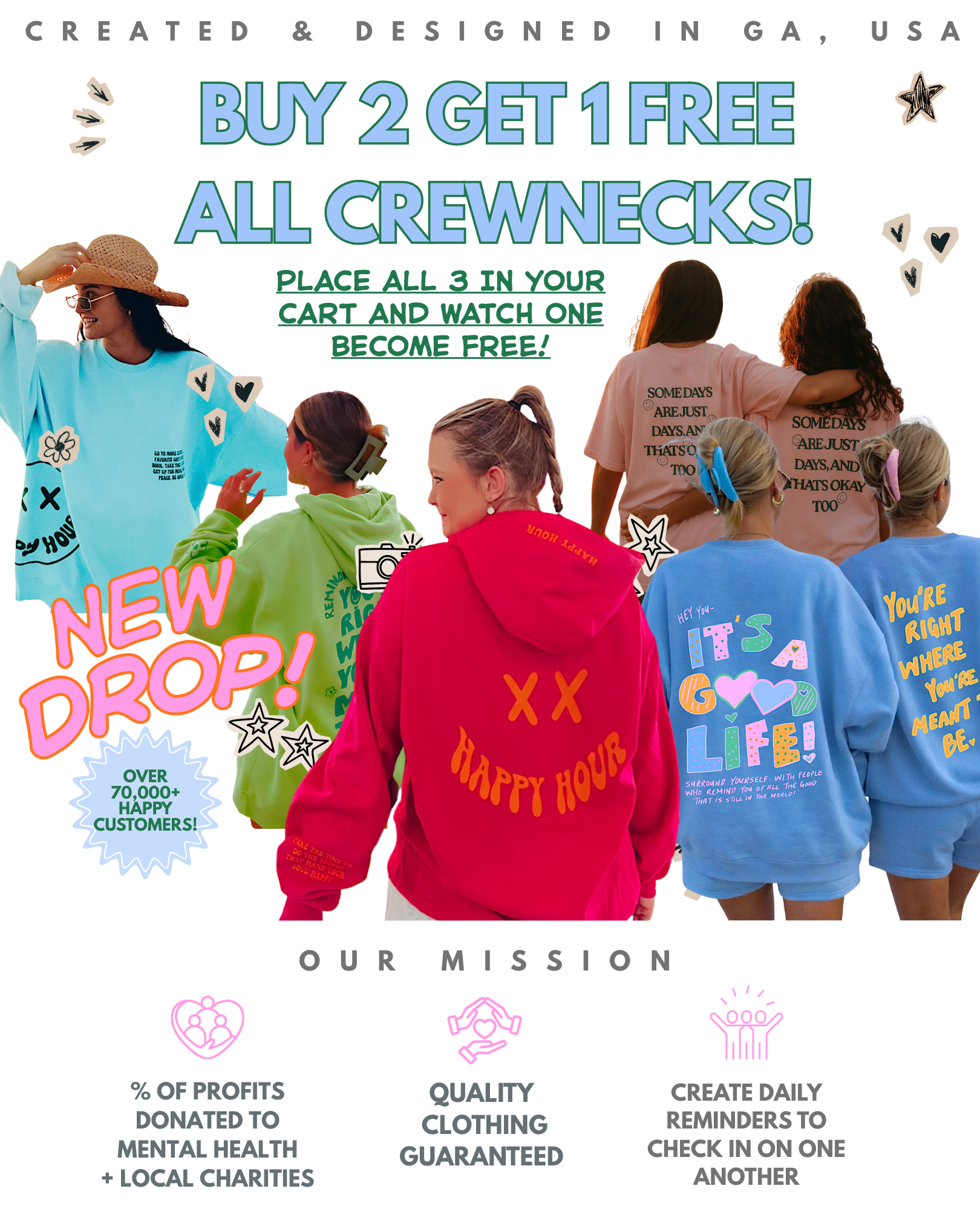 BUY 2 GET 1 FREE ALL CREWS! MUST ADD ALL 3 CREWS TO YOUR CART & WATCH ONE BECOME FREE!